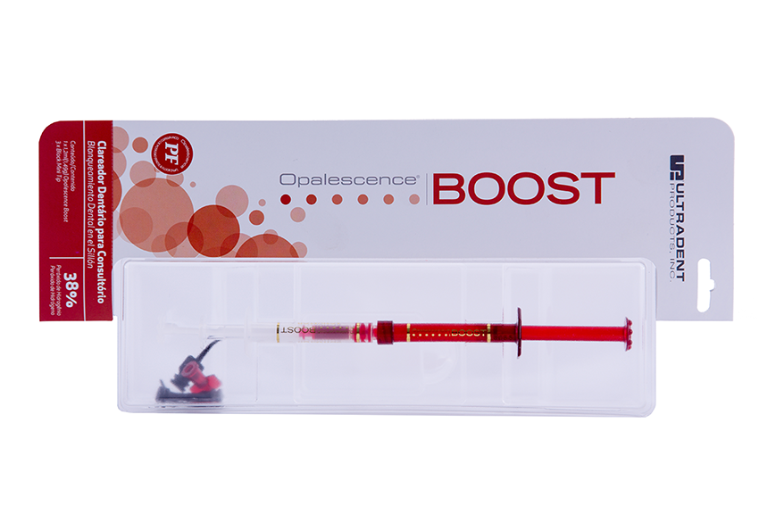 Opalescence Boost – O tratamento clareador de consultório mais potente disponível. Sua concentração de 38% de peróxido de hidrogênio é quimicamente ativada, então, não há a necessidade de luz